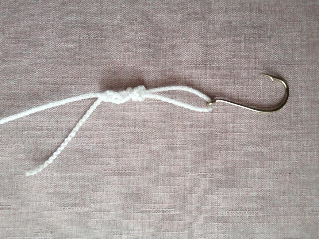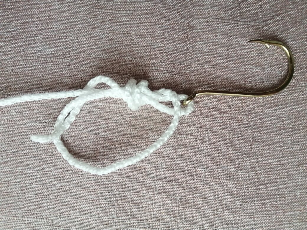 Теперь подтяните узел к ушку крючка и хорошо затяните.