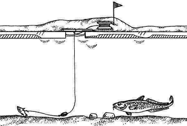 - Ловля налима зимой: В декабре и январе налим может уходить на дно, где его можно ловить с помощью зимних снастей: жерлиц, поставушек и донок. В качестве наживки используют мотыля, червя и живца. Обычно поставушки ставят на ночь, а утром их проверяют. Налим заглатывает приманку моментально и вытащить крючок из его желудка целая проблема.
