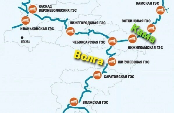 В дальнейшем были построены Волжская, Жигулёвская, Нижегородская, Саратовская, Чебоксарская ГЭС. Все гидроузлы образовали могучие водохранилища. Река превратилась в цепь водохранилищ. Волга из стройняшки превратилась в ветчину, перевязанную верёвками. Скорость великой реки упала в 10 раз. Теперь она не течёт, а ползет еле- еле. Прежде расстояние из верховья в Каспийское море река преодолевала за три-четыре недели. Сейчас на это потребуется год или больше. Вот такие катаклизмы у реки в 20 веке.