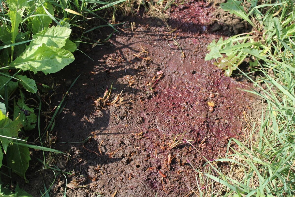 Снимаем слой дёрна и выливаем содержимое бутылки.
