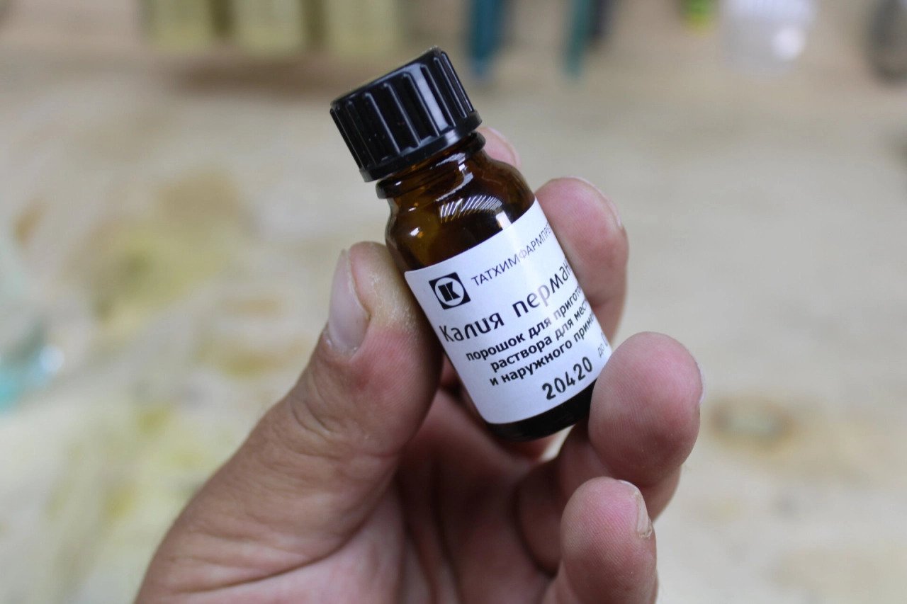 Отправляемся в аптеку и покупаем марганцовку. Да-да, читаю ваши мысли, что марганцовка не продаётся. С недавних пор, купить марганцовку можно без проблем. Я даже фото сделал.