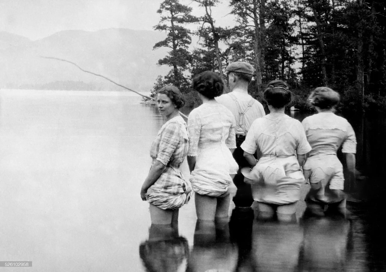 На финал я приготовил для вас фотоснимок, который даёт нам примерное представление о том, как же рыбачили в то время женщины, облаченные в платья с пышными юбками.
