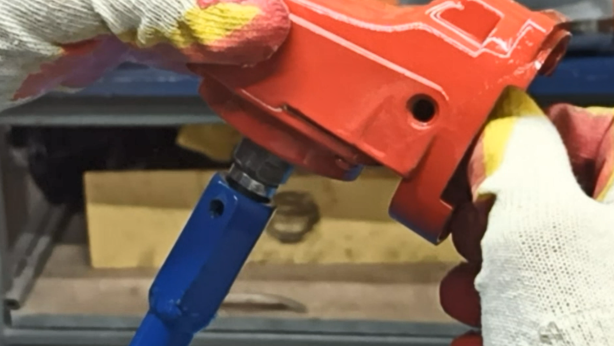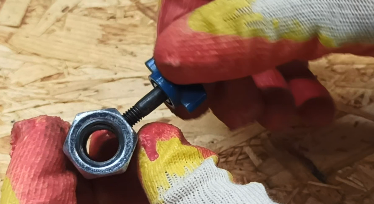 Еще в гайке нужно просверлить отверстие и нарезать резьбу и вкрутить туда болт, чтобы предостеречь ледобур от откручивания.