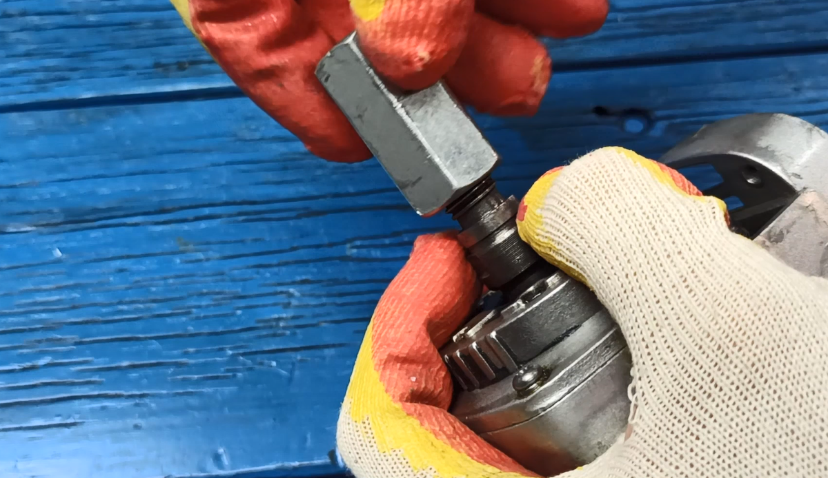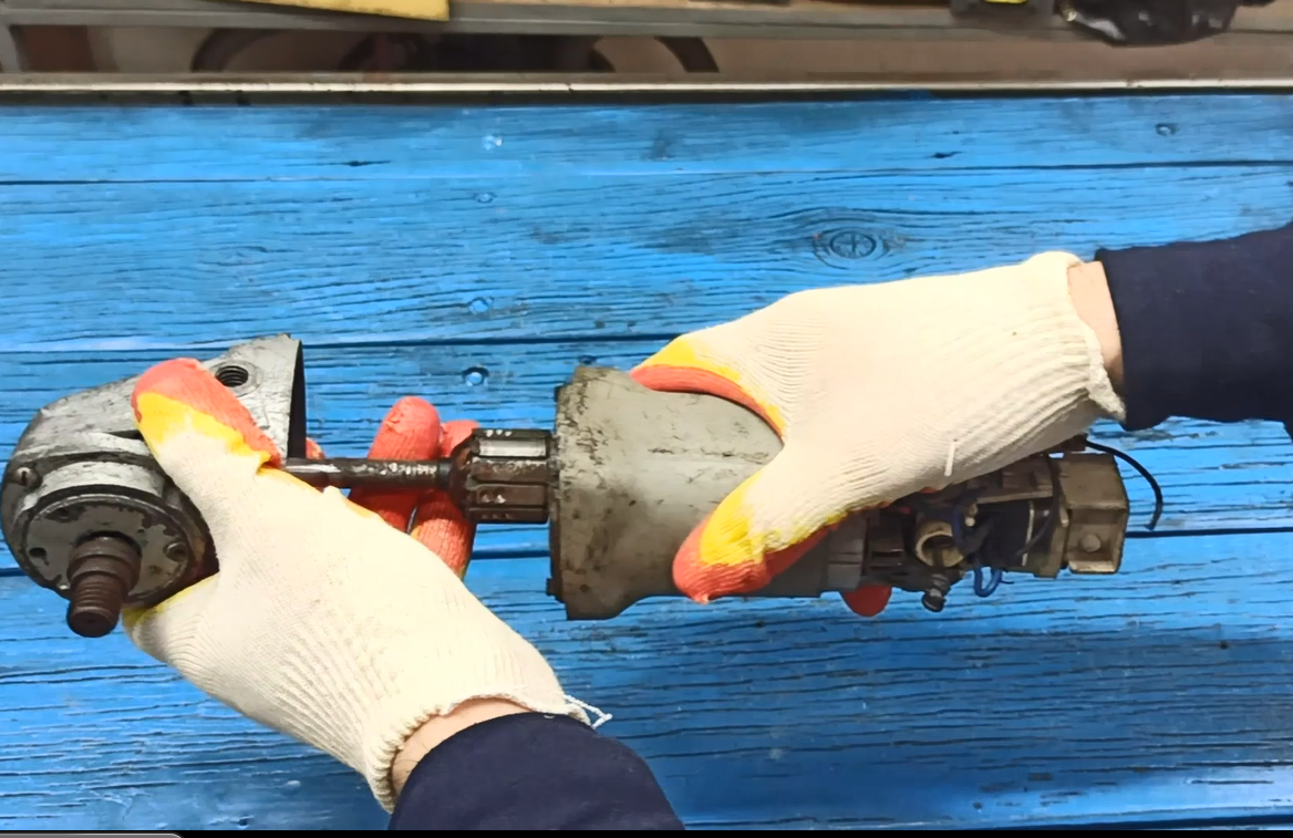 Первым делом нужно отсоединить корпус болгарки от редуктора. для этого откручиваем 4 болта-самореза.