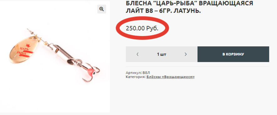 Цены на блесны, которые использовал В.В. Путин для ловли щуки
