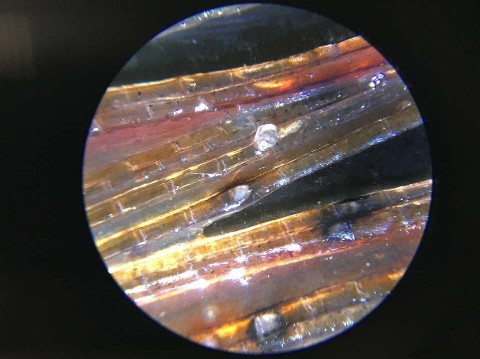 При изучении черных точек под микроскопом можно увидеть, что это капсулы, внутри которых и находится гельминт. Черное вещество вокруг них — это продукты распада, появляющиеся при контакте паразита с телом рыбы.