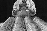 Рабочие упаковывают икру на консервном заводе 1958 год