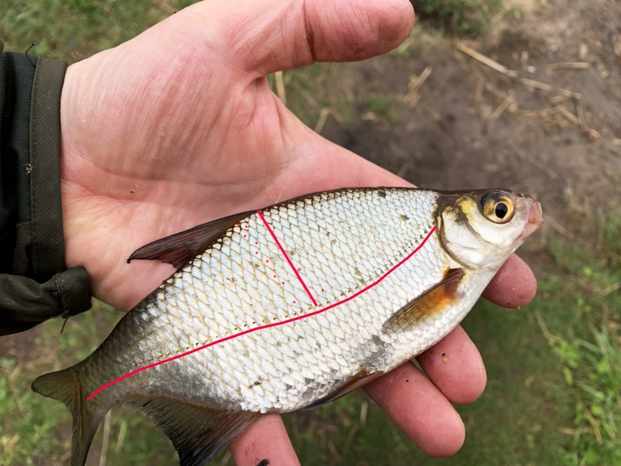 Кроме признаков, перечисленных выше, есть и еще один, «дедовский», стопроцентно надежный способ. Смотреть нужно на размер чешуи. У густеры она заметно крупнее. Поэтому можно подсчитать чешуйки на отрезке от боковой линии, которая идет от центра заднего плавника, и до спинного плавника.