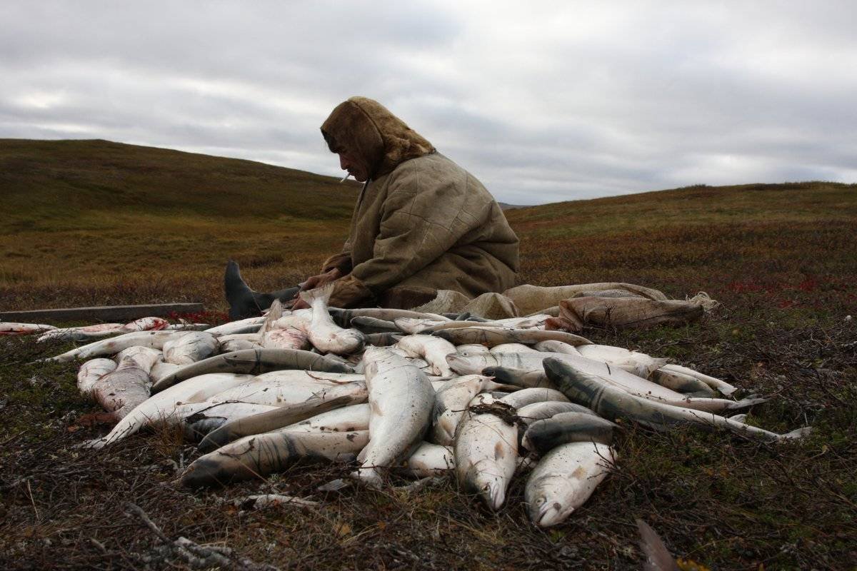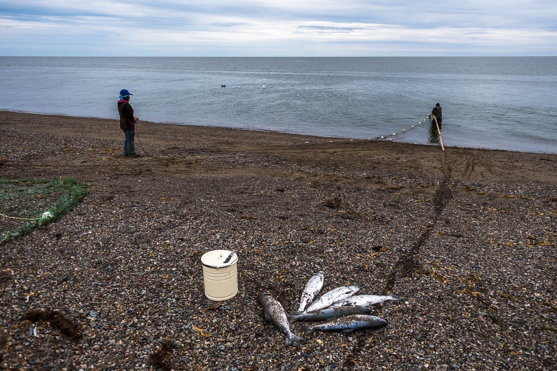 В разрешенные для ловли дни местные жители заходят прямо в воду и выбирают красную рыбу руками из сетей, оглушая ее колотушками. Тут же из тушек извлекают икру, а мясо либо отдают собаками, либо нарезают и скармливают чайкам. Все, что животные и птицы не съедают, в итоге отправляется обратно в море.