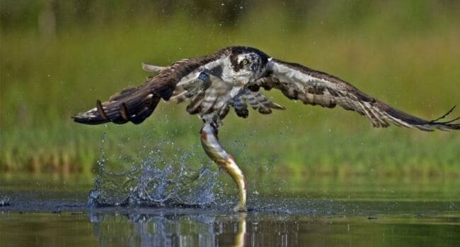 Орлан хватает рыбу в основном с поверхности, причем может без труда поднять щуку массой 2 – 3 кг. Скопа за добычей способна даже нырять непосредственно в водоем.