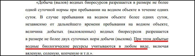 Хотя закон требует прекращения ловли после достижения суточной нормы, он не регулирует ряд важных моментов. А именно: