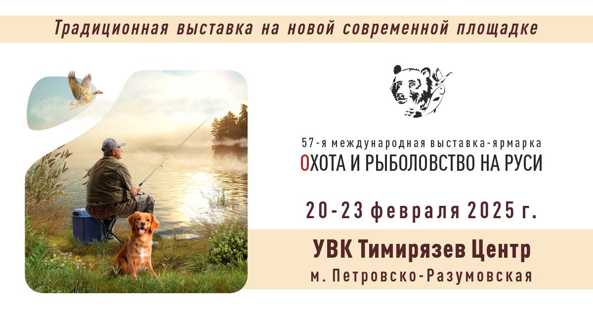 57-я Международная выставка-ярмарка Охота и рыболовство на Руси пройдет с 20 по 23 февраля 2025 в Москве, в УВК Тимирязев центр.