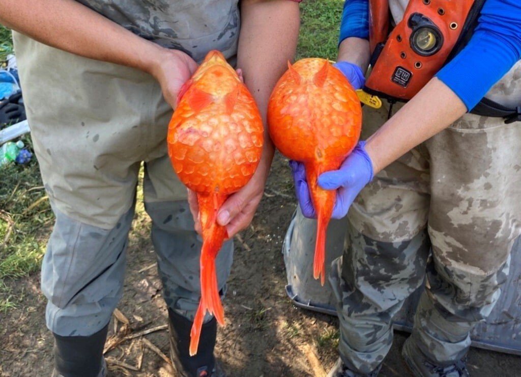 Такой случай уже зафиксировали в Онтарио (Канада), где в одном из озёр проводился эксперимент. Эти огромные золотые рыбки выросли в ходе исследовательского проекта, а на их теле установлены акустические датчики, позволяющие отслеживать перемещения.