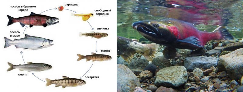 Например, семга, как один из ярких представителей этого семейства, перед началом нереста меняет свой цвет на темный, а самцы приобретают пятна красного цвета.