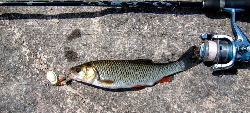 При ловле вдоль берегов, а также на участках с умеренным течением возможно применение вращающихся блесен. Главное условие – это точный заброс приманки, которая непременно заинтересует хищника.