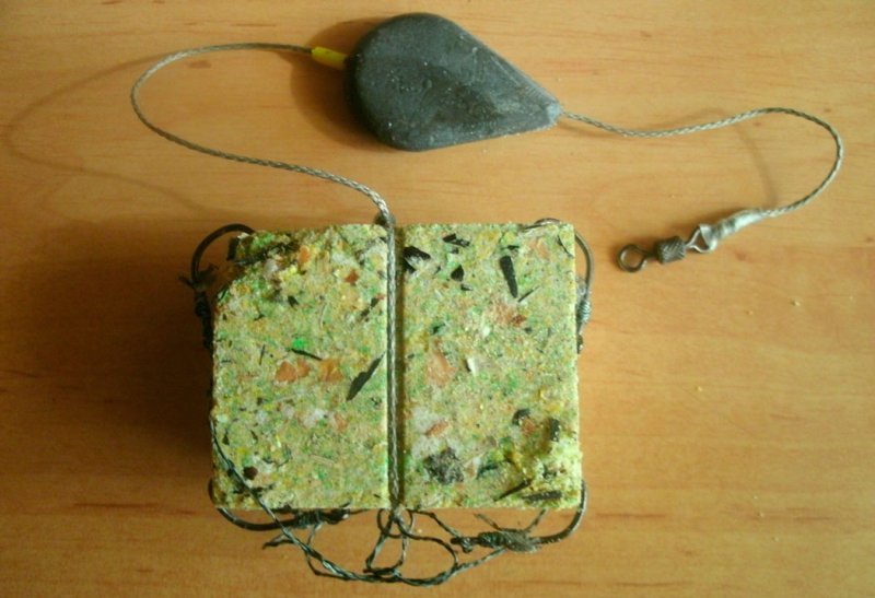 При этом она заглатывает и крючки с наживкой (как и при фидерной ловле). Макушатник является очень эффективной снастью, при этом, очень важно, чтобы прессованный жмых имел правильную плотность. Если плотность будет малой, то брусок быстро растворится в воде и положительного эффекта не будет, а если плотность окажется большой, то эффекта также не будет, потому что, брусок будет очень долго растворяться в воде, и вряд ли заинтересует рыбу. Оптимальное время рассасывания бруска 50х50х50мм – это, где-то полчаса.