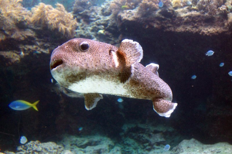 Как ни странно, но большинство представителей подводного мира знают, что рыба фугу ядовитая, в том числе и отъявленные хищники. Поэтому рядом с этой рыбой вряд ли удастся понаблюдать жизнедеятельность других видов рыб. В случае опасности, рыба фугу надувается и становится похожей на колючий шар, а ее мясо настолько токсичное, что даже хищники стараются обходить ее стороной.