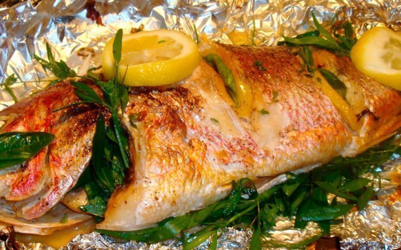 - Подается рыба к столу в этой же форме, приправленная зеленью.