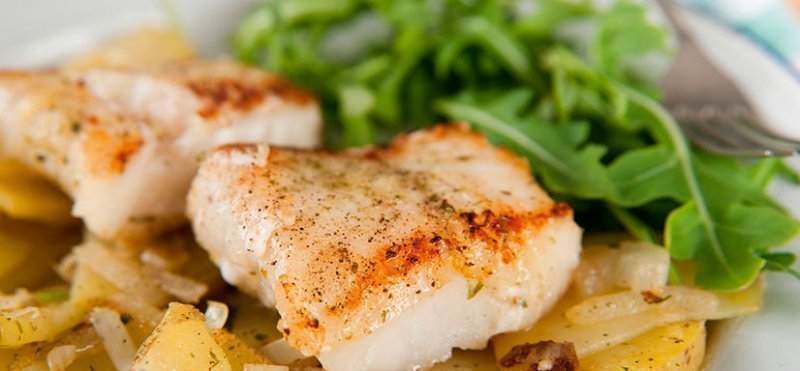 - Рыба жарится на разогретой сковородке с растительным маслом. Огонь должен быть не большим. Готовится мясо хока до появления золотистого оттенка.