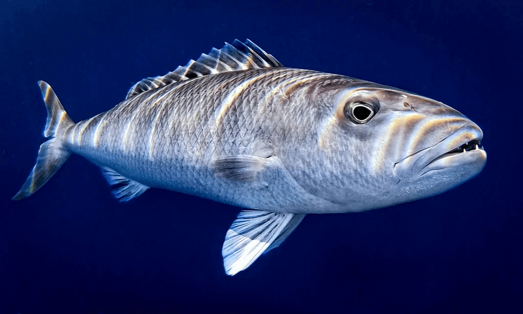Априон еще называют рифовым окунем и эта рыба очень своеобразная на внешний вид. Тело овальной формы немного сдавленное по бокам и покрытое крупной ромбовидной чешуей. Голова круглая, большая и сплюснутая. Достаточно крупные карие глаза и большие, острые зубы-клыки. Хвост очень мощный, имеет формы молодого месяца. Этот красавец окрашен в зеленовато-серые или синевато-серые цвета. При этом брюшко у этого сорванца серебристое. Сплошной спиной плавник состоит из жестких и мягких лучей. На боках расположены чувствительные, вертикальные полосы. Интересные факты о чудном морском жителе.