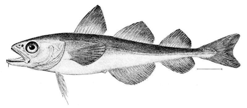 Сайка – это одна из самых мелких представительниц семейства «тресковые». Вырастает она в длину до 25-30 см не больше, хотя встречаются отдельные экземпляры, длиной до 45 см. При этом весит рыба не больше 300 граммов. Тело удлиненное и сильно сужается ближе к хвостовой части тела. Между спинными и анальными плавниками наблюдаются большие промежутки. Хвостовой плавник отличается глубокой выемкой, а брюшной – наличием нитевидного луча.