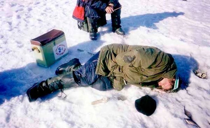 Большие дозы алкоголя приводят к тому, что рыболов может уснуть на морозе, а это серьезный риск замерзнуть. К тому же, у пьяного рыболова теряется реакция, что приводит к не результативности рыбалки. Следует так же помнить, что не все рыболовы вернулись после такой рыбалки домой живыми.