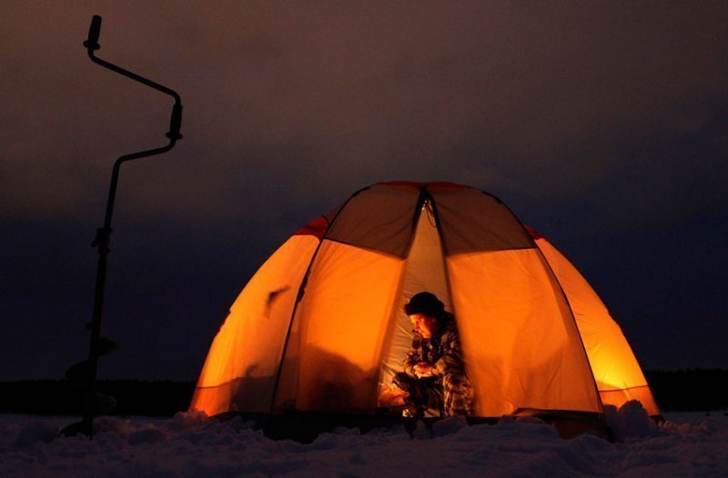 В основном, выбираются палатки светлых тонов, так как в них наиболее светло. Самое главное, что палатка может защитить и от мороза, и от ветра, и от снега.