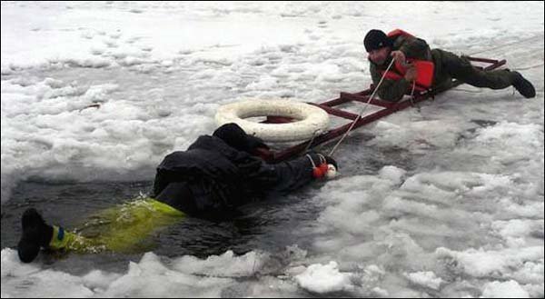 - Если лед начал трескаться, то нельзя по нему бежать. Следует на лед лечь и передвигаться по нему ползком.