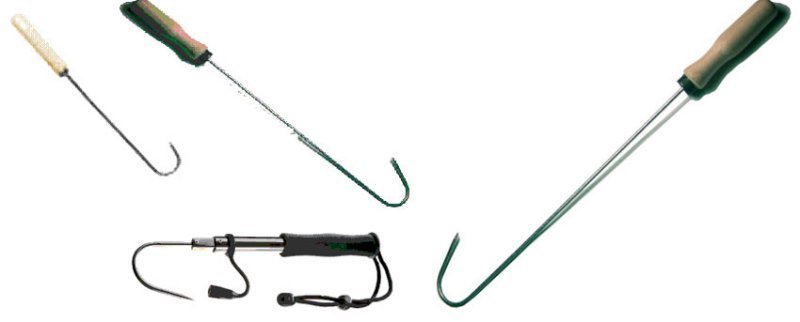 Очень полезная штука при ловле крупной рыбы. Без него вряд ли удастся выудить из лунки, тем более, если особь по размерам большее нее. Такое приспособление не сложно сделать самому, достаточно иметь отрезок проволоки, на которой следует поставить деревянную ручку.