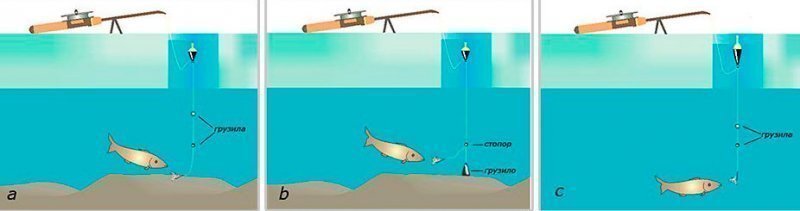 В условиях наличия течения, даже не большого, снасть следует перегрузить, чтобы она находилась в одной точке. В таком случае получается вариант поплавочной удочки для ловли на течении.
