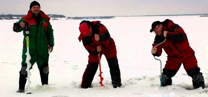 У каждого рыбака свой ледобур, а это означает, что никто из них не бегает по водоему и не пытается одолжить этот инструмент хотя бы на короткое время. Как правило, он постоянно задействован, поскольку приходится постоянно бурить лунки в поисках рыбы. Пробивается, как минимум 10 лунок в начале рыбалки. Если повезет найти стоянку рыбы, то можно отделаться этими лунками. В противном случае придется пробить еще столько же.