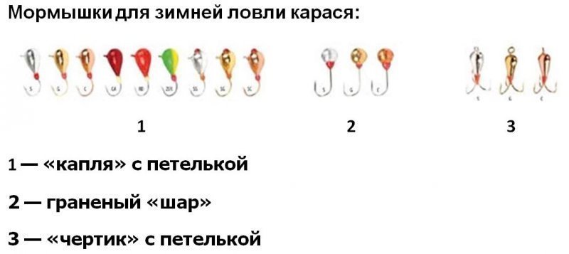 Наиболее популярные мормышки при ловле карася зимой такие: