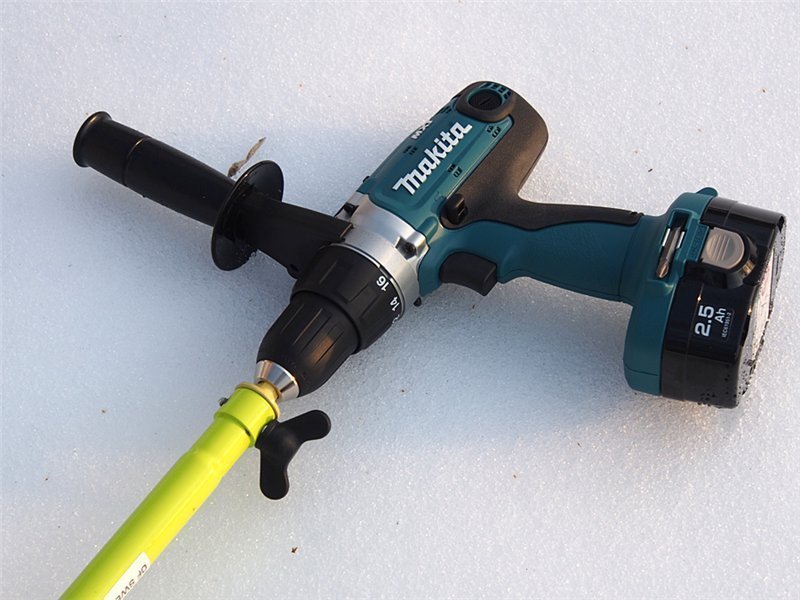 Рыбаки пользуются двумя вариантами изготовления подобного инструмента. Использование шуруповерта позволяет улучшить его эксплуатационные характеристики за счет скорости сверления.