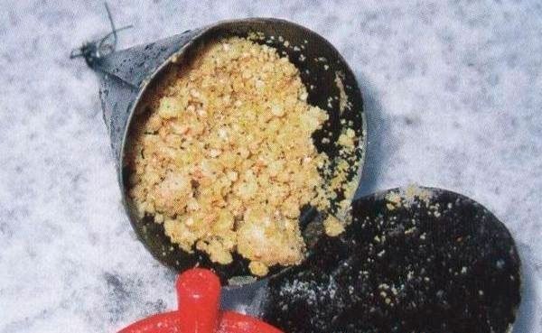 В качестве прикормки пойдет любая каша или обычная макуха. Прикормка подсыпается в лунку маленькими порциями, чтобы не насторожить рыбу.