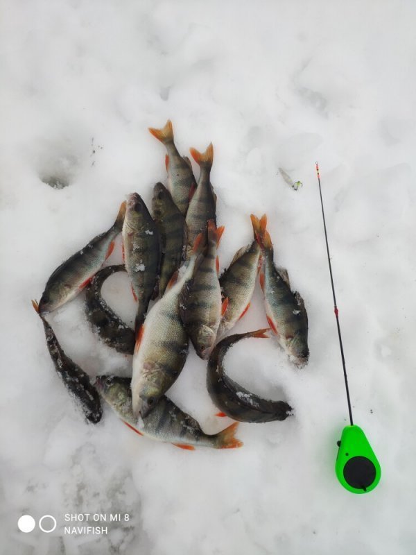 В третьей или четвертой лунке обнаружили стаи хорошего окуня. Ловить было весело. Мой товарищ натягал приличное количество. Мелких отпускали. Я поставил свою любимую серебряную КТ 36. Пошла жара. Только успевай отцеплять рыбу и бросать в лунку блесну. Такая рыбалка доставляет большую радость. Поклевок никогда не бывает много, их всегда не хватает))!