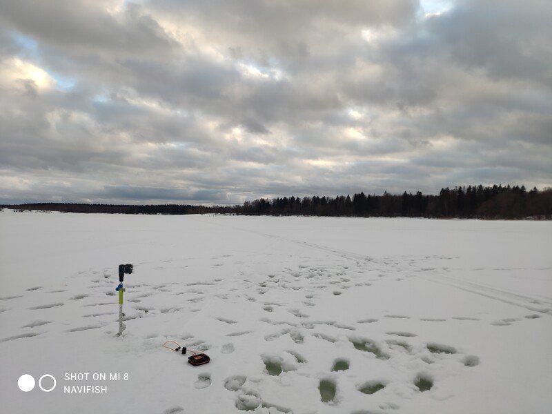 Окунь брал жадно. В одной из лунок, видимо, подошел крупный. Удары следовали один за другим, все никак не мог подсечь. И, наконец, мне это удалось. В азарте совсем забыл, что леска была на этой удочке 0,11. Я инстинктивно подсек слишком резко. На другом конце лески повисло что то весомое. Она не выдержала и лопнула. Это не было срезом щуки. То, скорее всего, был килограммовый горбач не меньше. Минуту стоял расстроенный, Очень жаль было блесну. Тут же написал мастеру Александру, чтобы он мне еще одну сделал. Уж, как то, я к ней прикипел)). Теперь вот жду. Без нее ловить уже не в радость. Придя в себя, поставил Козикомбу. Окунь клевал, но не так активно.