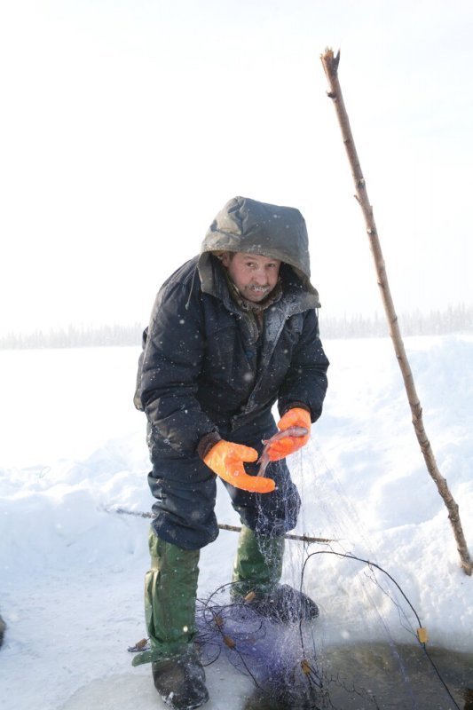Кстати, Дмитрий Васюков, который снимал шедевральные фильмы «Счастливые люди» в Туруханском крае, и прожил там год со съемочной группой, однажды приезжал со мной сюда, чтобы снять продолжение этой темы только про поморов, вернее их современных потомков. Несколько дней съемки при -30 провели здесь. Но, к сожалению, эти кадры не вошли в фильм. Видимо, передвижения по тайге здесь слишком сложные. Весь сюжет с поморами он снял чуть позже на Архангельском берегу Белого моря.