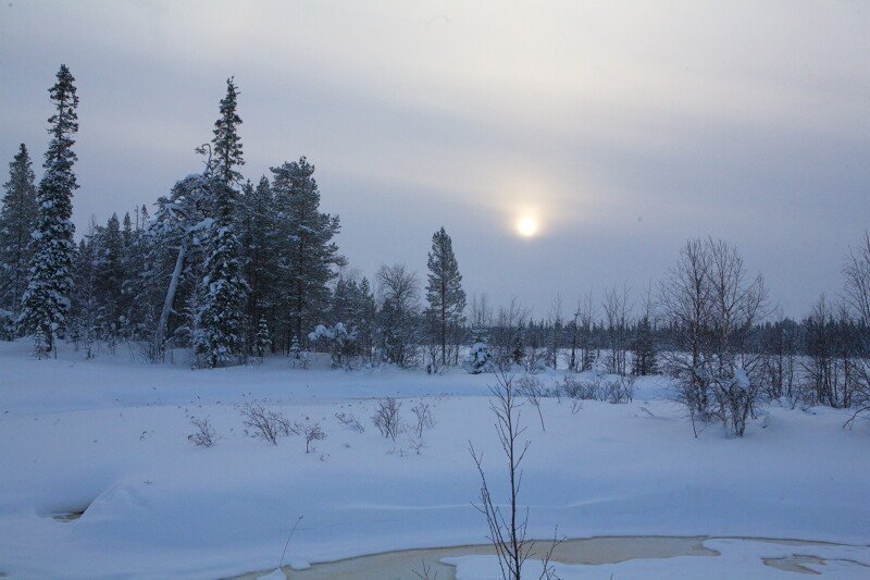 Впервые я попал в эти края лет 20 назад. Дело было в июне, на одной из рек ловили семгу по лицензии. Края эти очень понравились, характерным суровым северным покоем, опушками с беломшанником, и остроконечными елками, вершины которых дырявили небо. И когда друзья из компании Терский берег пригласили на зимнюю рыбалку на таежные реки и озера, тут-то и раскрылась зимняя красота заполярной тайги.