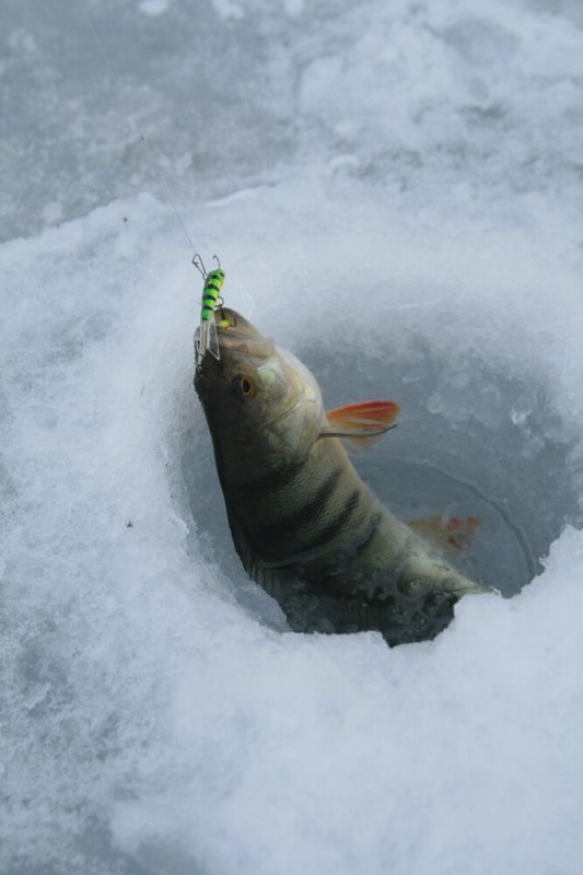 На одном интересном озере мы в поимке живца в виде окуня провели половину дня, солнце стало катиться к закату. А окуни, как назло клюют мерные под 300-400 граммов. И уже от нечего делать, вернее, от безысходности, режу этого окуня на четыре части и насаживаю первую жерлицу. Да не живец, а вдруг? Едва я жерлицу выставил — сработка. Видимо, большой кусок насадил подумал я, тяжело получилось. И наклонился, чтобы ее вытащить, но вдруг жерлица ожила и начала сбрасывать леску, я подсек, попытался потащить. Но она даже не развернулась, просто леска сказала ПУМ! и перерезалась о край лунки.