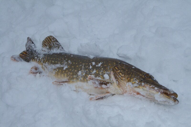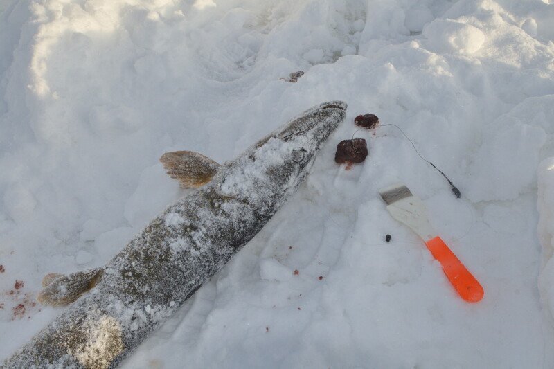 Местная щука очень уважает мороженую печенку, а живцов в виде хариуса порой игнорирует.