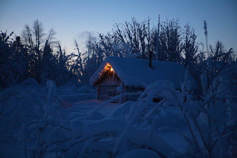 Избушка, протопленная печь и генератор для освещения. А что еще надо усталому путнику?