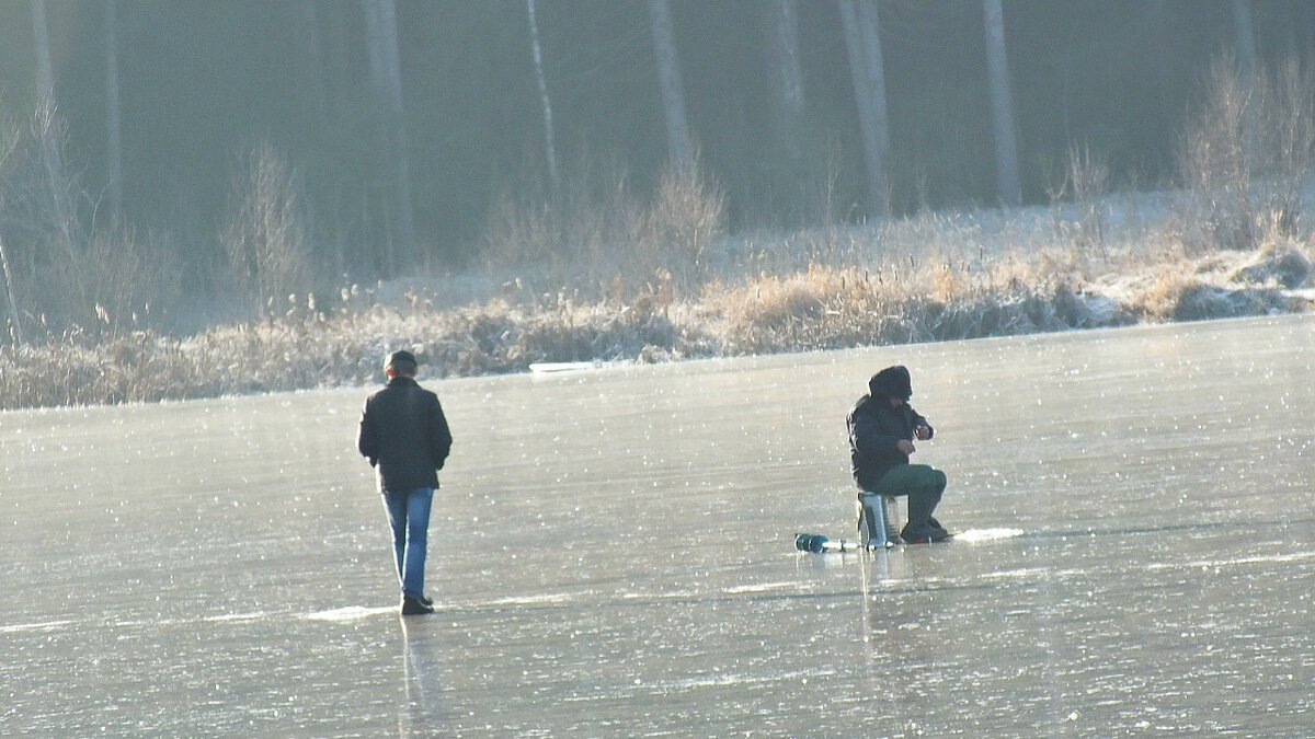 Первый лед, нужно быть максимально аккуратным при толщине льда 5-6 см.