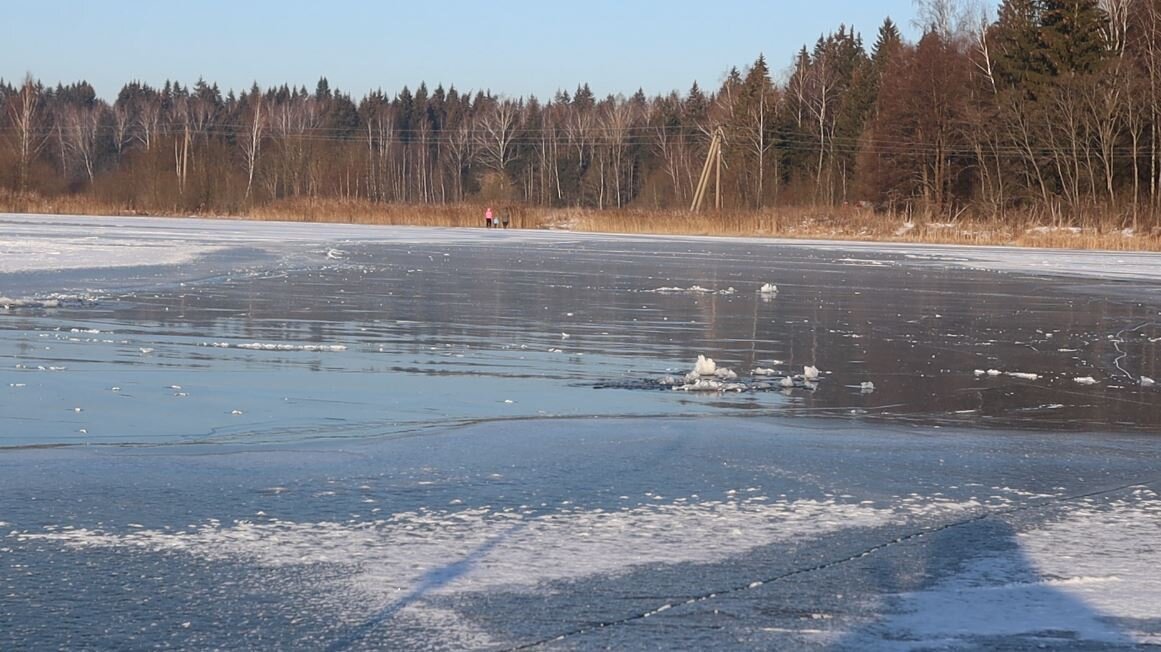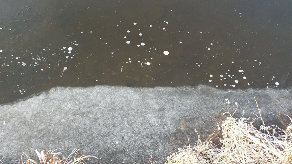 Самые хрупкие места это участки с растительностью и камышом. Тут лед максимально не прочный.
