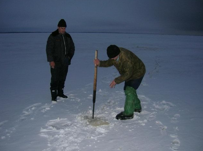 Следует помнить, что лед часто бывает неоднородным – где-то он толще, а где-то тоньше.