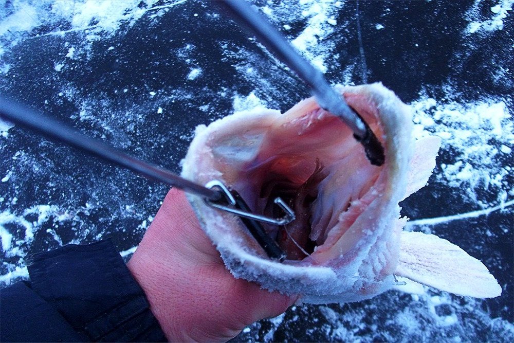 Тройники имеют высокую зацепистость, надёжную подсечку и отсутствие сходов при вываживании, но работают они не всегда. Максимальная результативность только когда щука активная, а это, в основном, начало и конец зимы.