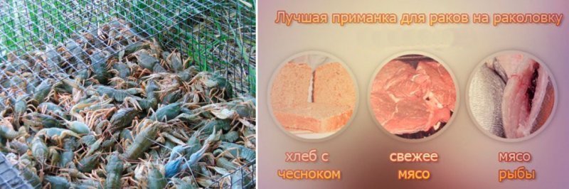 На картинке можно увидеть самые распространенные приманки для лова раков, которые кроме всего прочего еще и достаточно эффективные. Проверяется раколовка настолько часто, насколько большая популяция раков в водоеме. Если через час в раколовке раков не оказалось, значит раков в пруду немного и можно смело оставлять снасть на ночь. Если и ночь дает слабые результаты, то снасть можно оставлять на сутки. Во всяком случае, следует следить за тем, чтобы улов соответствовал потребностям. Нельзя ловить подводных обитателей из-за наживы. Рано или поздно можно остаться вообще без раков, так как их можно просто всех выловить, тем более раколовками.