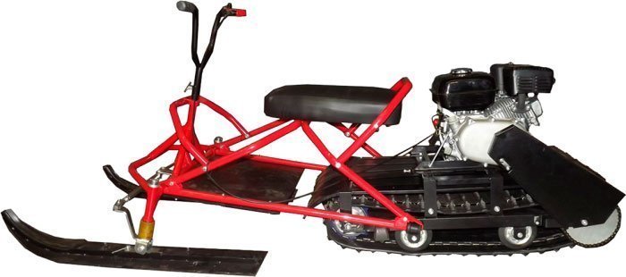 - В конструкции мини-снегохода применяется центробежное сцепление с приводом, что реально упрощает его эксплуатацию.